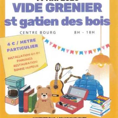 L'APE du Bois Joli organise un vide-greniers le jeudi 14 mai 2026 dans le bourg de Saint-Gatien-des-Bois de 8h à 18h
